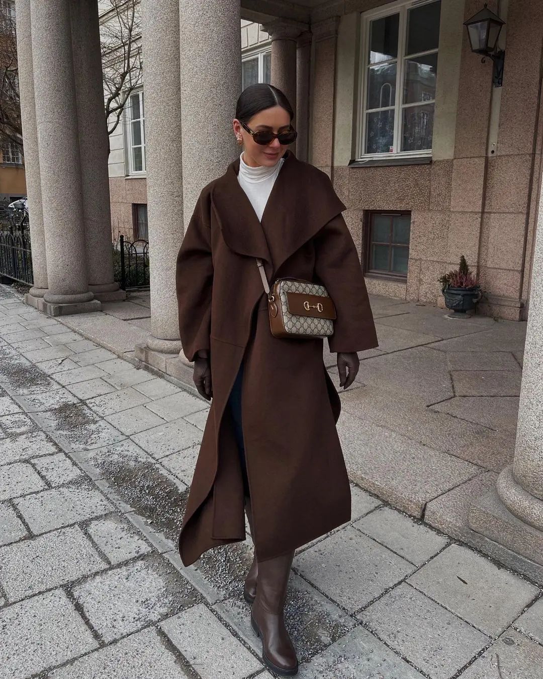 Finally, I finished my look with a pair of Saint Laurent Oval Sunglasses in Havana Green. These sunglasses add a trendy touch and are perfect for those sunny winter days when you want to protect your eyes without sacrificing style. Their unique shape and colour provide a modern twist, making them a statement accessory that ties the outfit together.